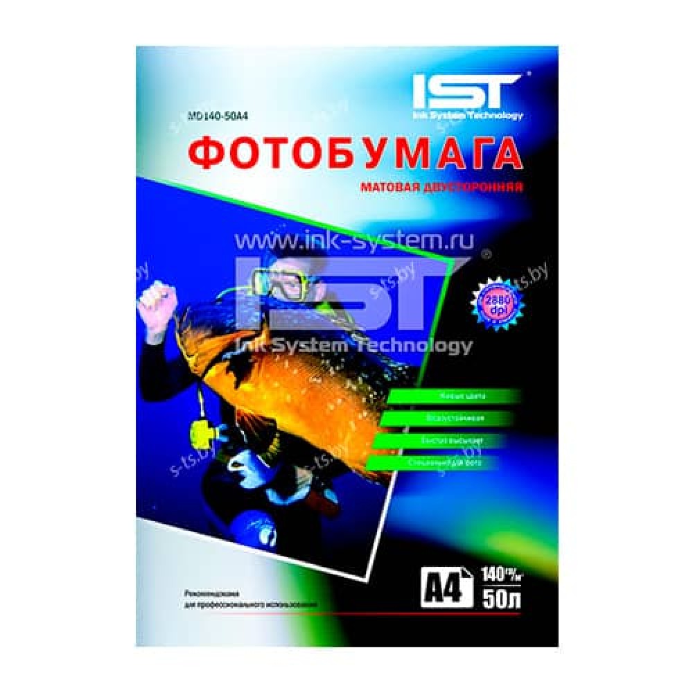 Основные характеристики Фотобумага глянцевая двусторонняя А4, 220 г/м2, 50л, IST